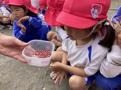 なんだ👀なんだ👀 このピンク色の種は何の種でしょう!? なんと・・・ポップコーンの種です✨